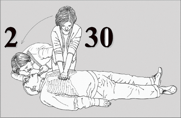 Una vez realizadas las dos ventilaciones efectivas, seguiremos las pautas que nos indica el algoritmo que es seguir con el ciclo 30:2 hasta que se disponga de un desfibrilador (DEA).
