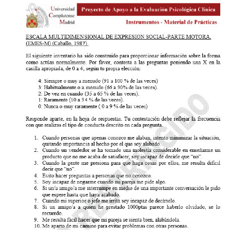 - La EMES-M valora los aspectos conductuales. En este caso el cuestionario consta de 64 ítems y cuanto menor son las puntuaciones, mejores son las habilidades sociales que tiene el individuo.
